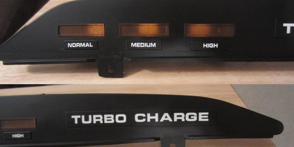 Pontiac installed three lights in the back of the hood scoop of the 1980-81 Turbo 4.9 Trans Ams and Formulas. Labeled "NORMAL", "MEDIUM" and "HIGH", they indicated when the turbo was building boost. The NORMAL light is always on with the ignition key. The MEDIUM light would illuminate around 2-3 psi of turbo boost. The HIGH light would come on around 6-7 psi of boost. There is a three position switch to turn the lights on and to set their brightness. The switch (HI, OFF, LOW) was mounted in a plastic panel below the radio in 1980. In 1981, the switch was relocated to just below the center console door behind the shifter.