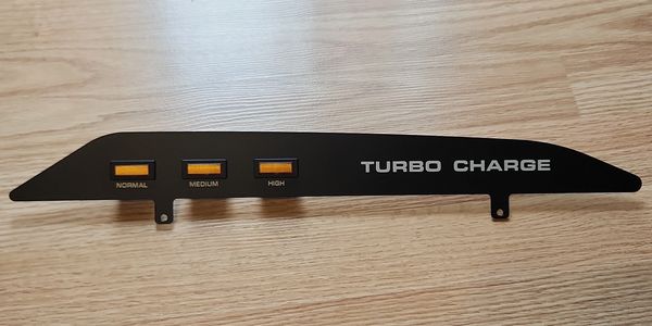 The boost light panels tend to be very fragile and crack easily being made of plastic. We have a replacement panel that is laser cut from 14 gauge steel and uses the factory mounting holes and screws. The lights in this replacement are amber colored lights that are similar in size and shape to the original boost lights. The panel now comes powder coated, and our reproduction decals installed along with a short adapter harness to plug the lights into your original bulb sockets. The lights dim, just like the originals, with your original switch.